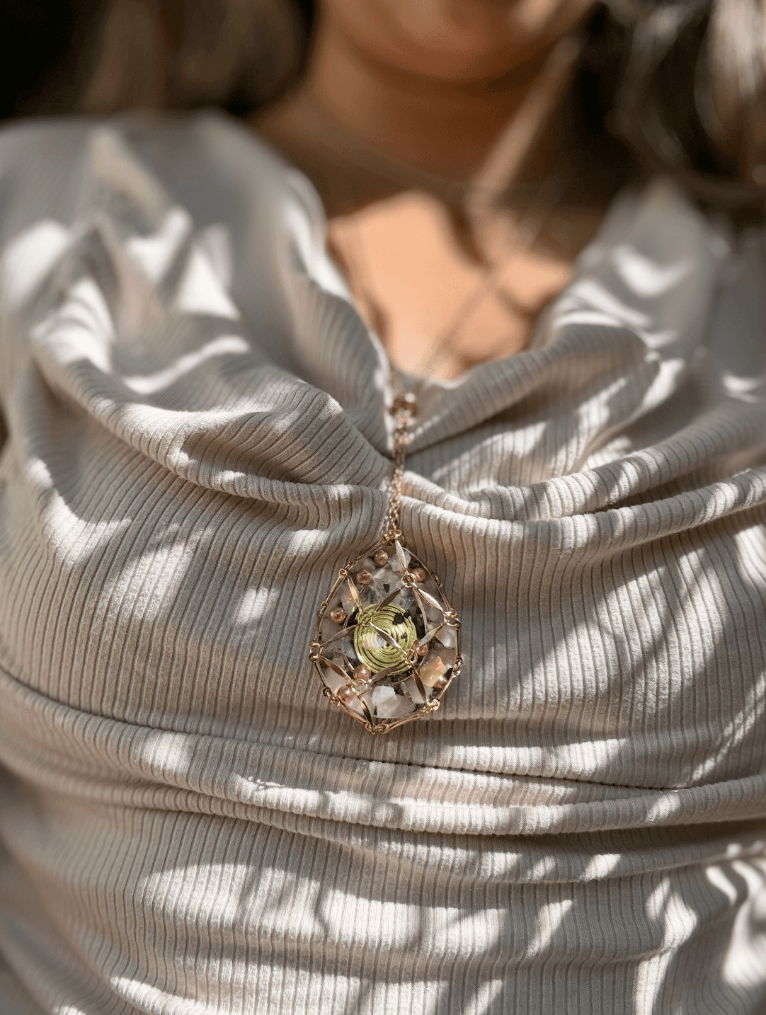 The Orgone Necklace is a handcrafted energy piece that shields from EMF, transforms negative energy, and promotes mental and emotional clarity — a stylish, protective boost for daily balance and well-being.